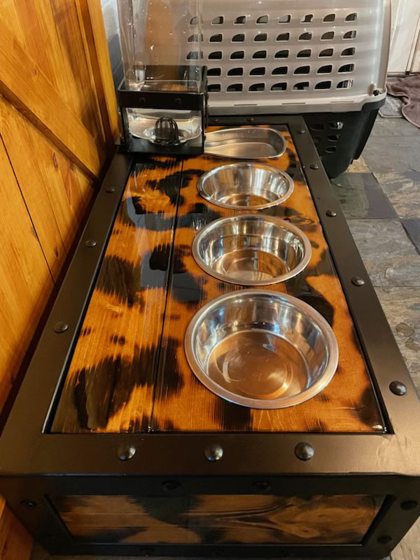 Spoil your canine companion with a choice of three captivating wood finishes. Whether it’s the warm and inviting Honey, the edgy and bold Blackout Burn, or the uniquely captivating Partial Burn, each option promises to complement your home decor while giving your pup a personalized dining experience.